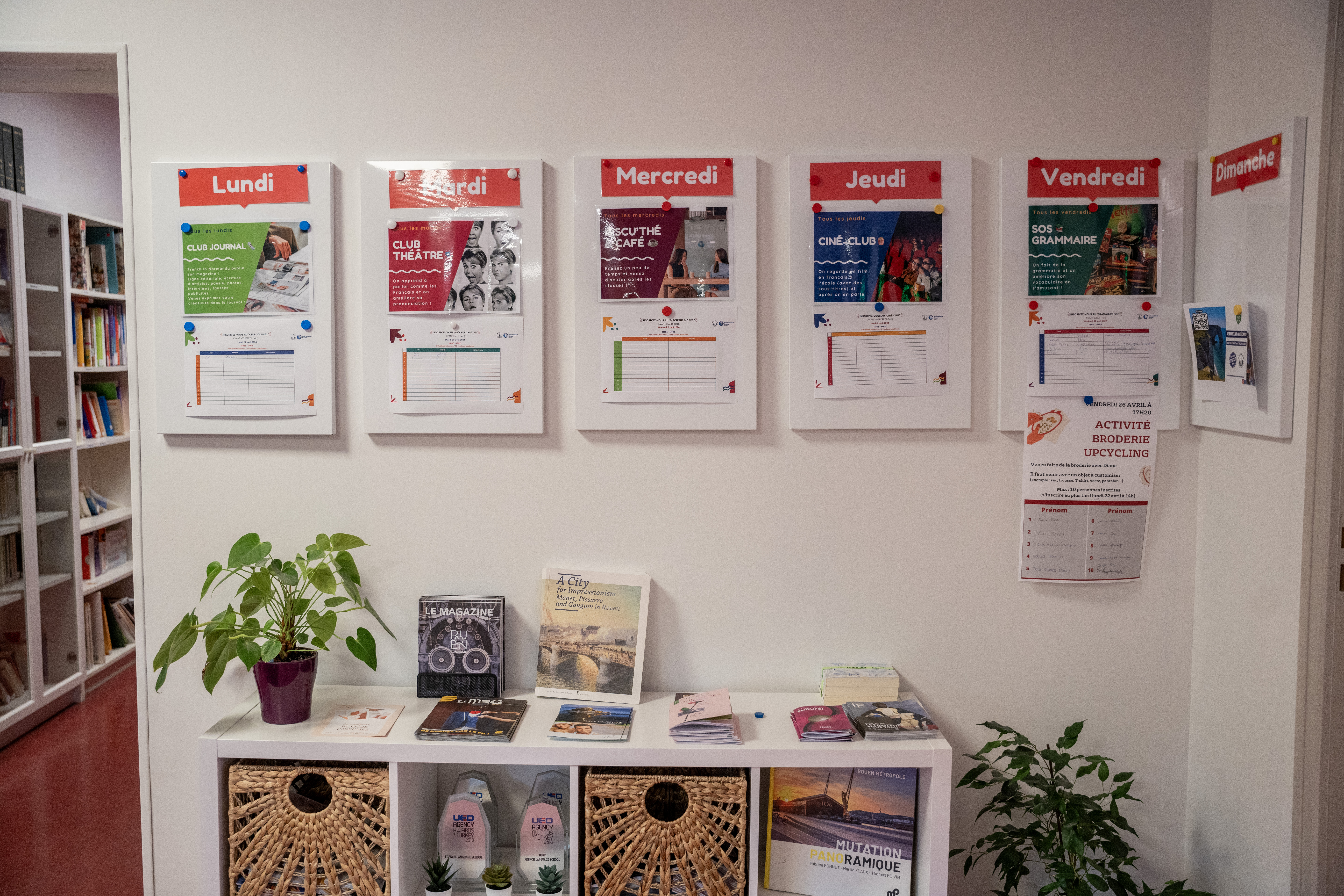 Excursion chaque samedi sur les lieux touristiques de la Normandie: Mont St Michel, village de Camembert, Plages du Débarquement, maison natale de Corneille, maison de Victor Hugo, musées de Rouen, Bayeux (tapisserie), Giverny (Monet), Dieppe, Honfleur, ... Activités culturelles en semaine (cuisine, peinture, sculpture, cinéma, lecture, ...) sous forme de clubs (gratuits)